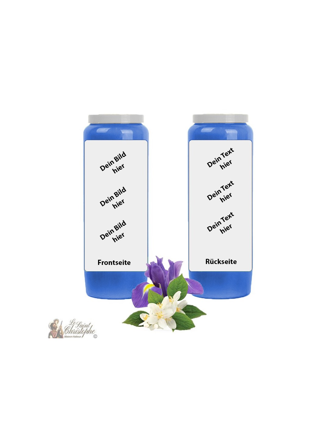 Kerze für die Novene mit Jasmin- und Irisduft, dunkelblau. Ein Karton enthält 20 Kerzen.