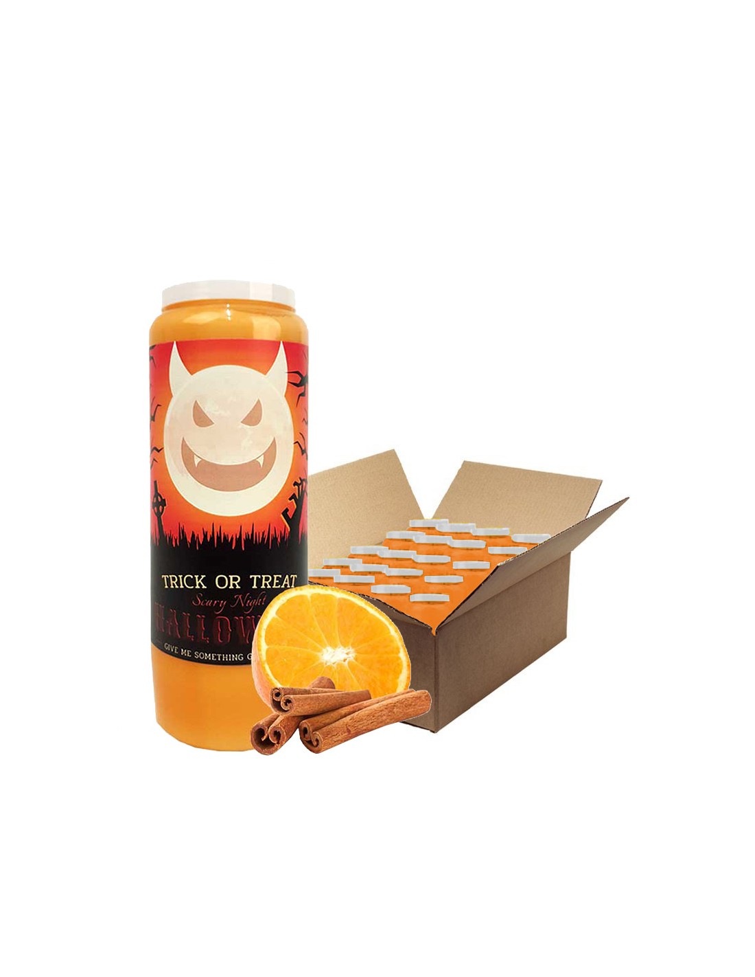 Novena Kerzen Orange-Zimt duftend Halloween Trick-Treat Karton 20 Stück