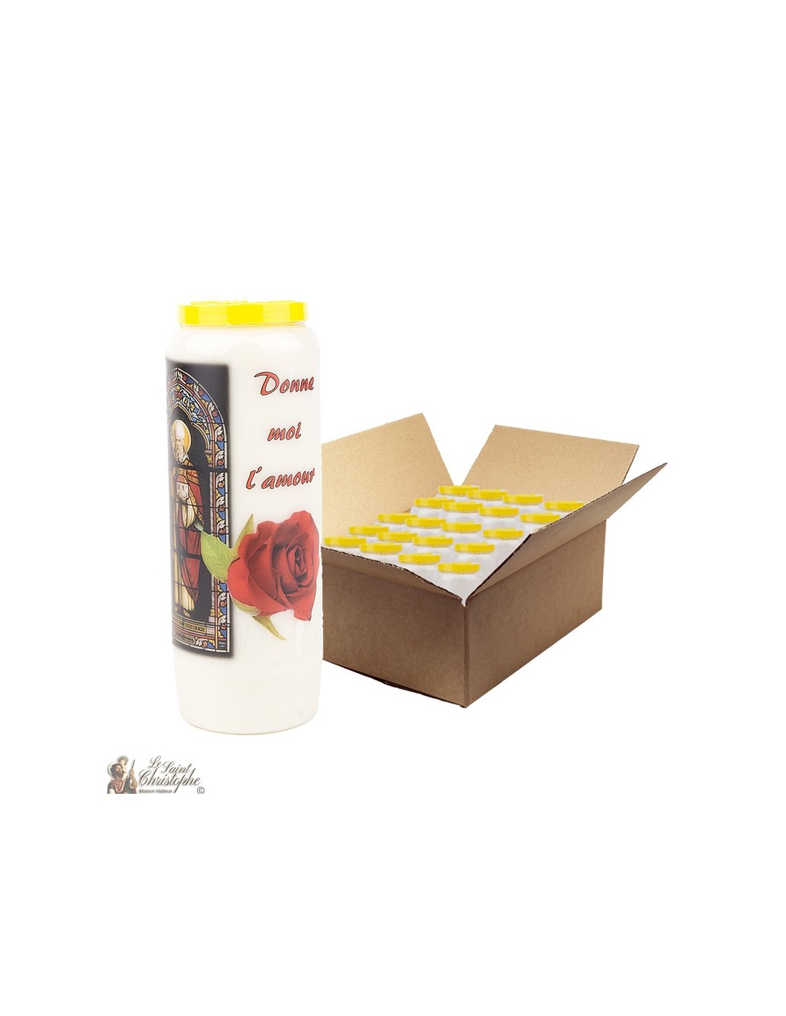 Gemüse-Novenkerze mit Bild und Text zum Valentinstag auf der Rückseite in der Sprache Ihrer Wahl. Eine Hilfe, um Ihre Liebe zu stärken oder sich mit ihr zu umgeben.