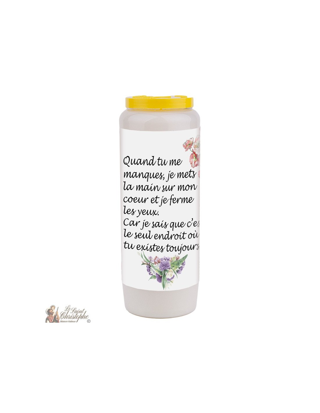 Gemüsenovenkerze mit dem Bild Ihrer Wahl auf der Vorderseite und einem Gebet auf der Rückseite, das einem verstorbenen geliebten Menschen gewidmet ist.