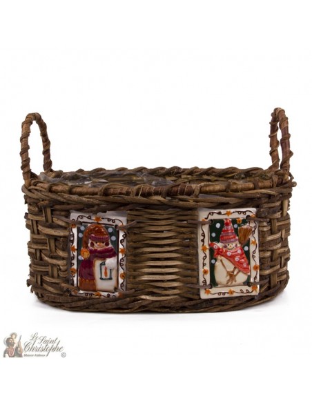 Basket decorated with Christmas ceramics with novena candles