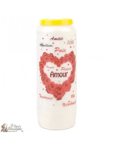 Vegetable novena candle with Valentine's Day picture and text on the back in the language of your choice. A help to strengthen your Love or to surround yourself with it.