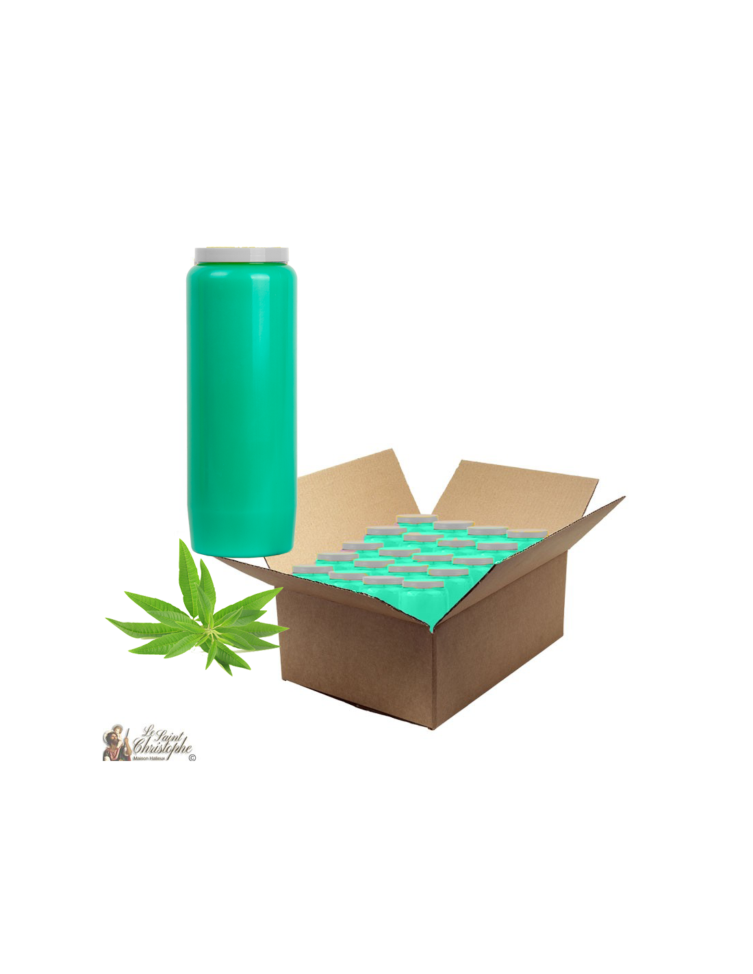 Vela de novena verde claro, perfumada con verbena.