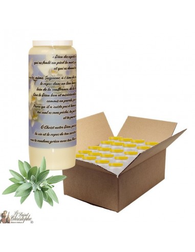 Vela de novena - Una caja contiene 20 velas de novena con un aroma de salvia.