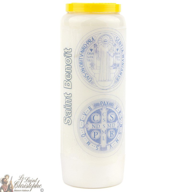 Vela de novena vegetal con la imagen de la Virgen María y la oración en la espalda en el idioma de su elección.
