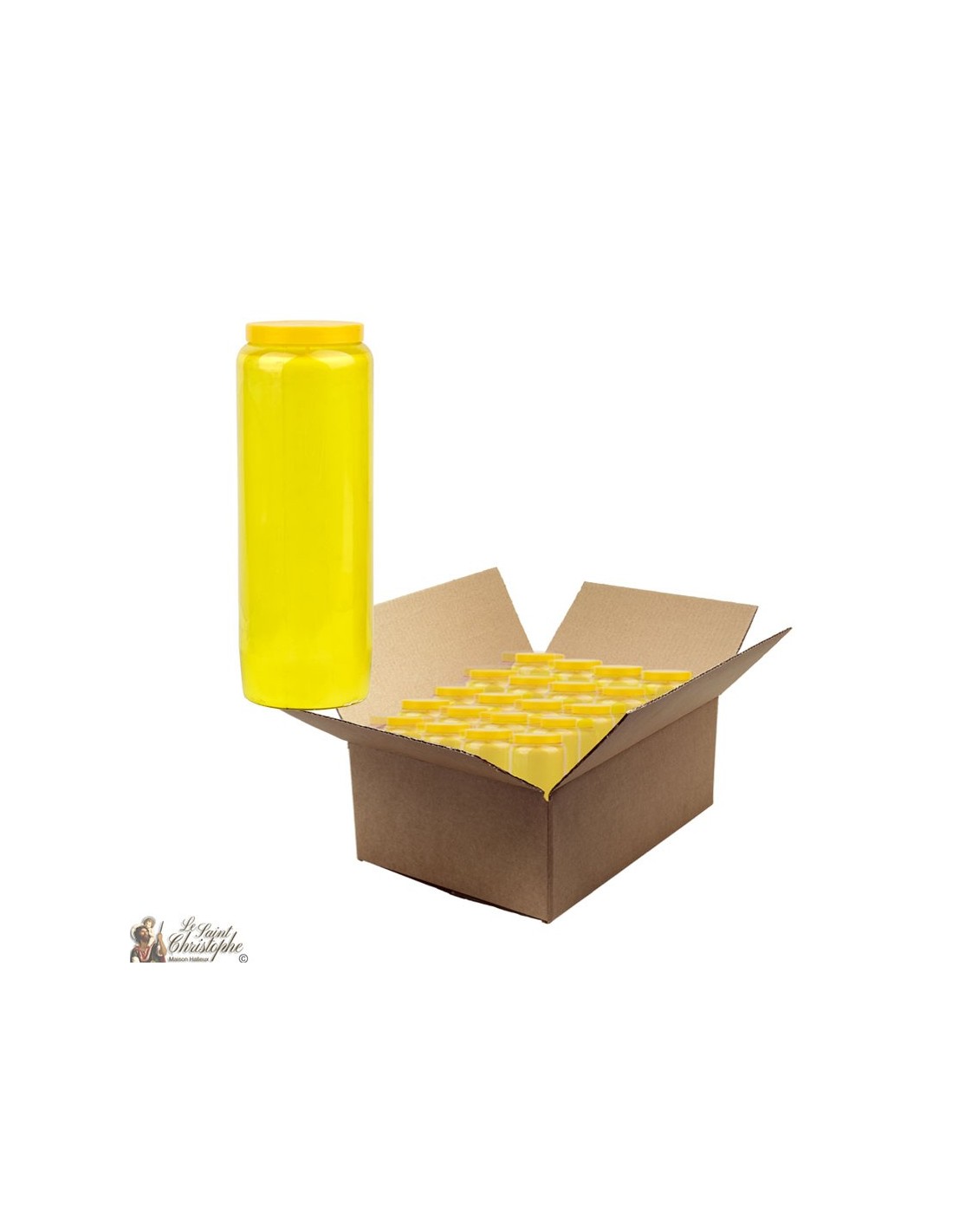 Vela de novena amarilla. Una caja contiene 20 velas.