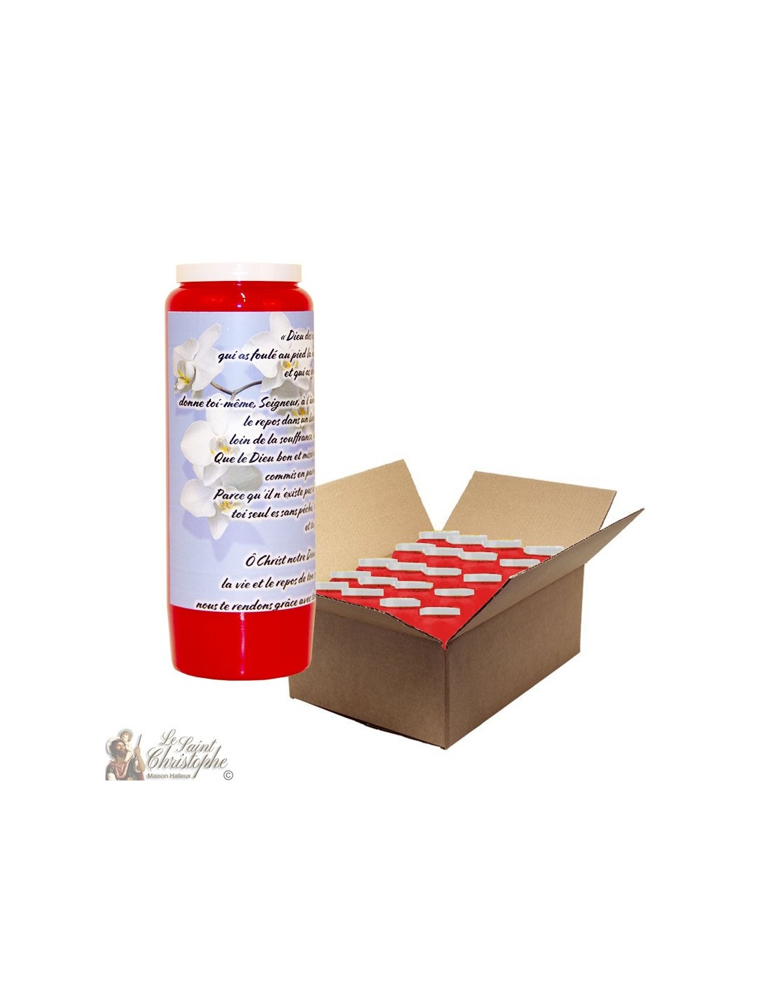 Bougie de neuvaine rouge pour défunt - Fleurs - 20 pièces