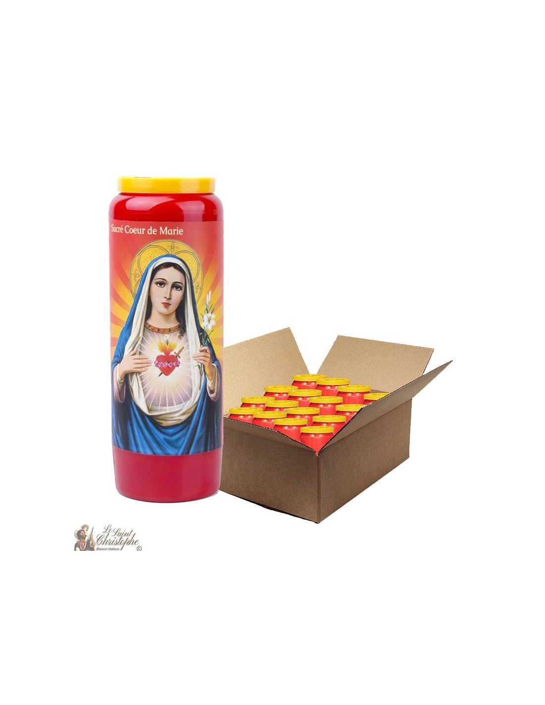 Bougie de neuvaine rouge au Sacré Cœur de Marie - carton 20 pièces