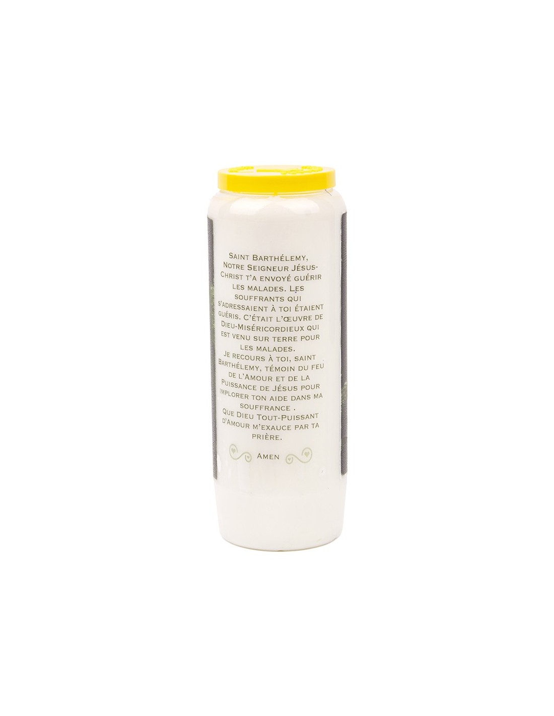 Bougie de neuvaine à l'image de Saint Barthélémy et prière au dos.