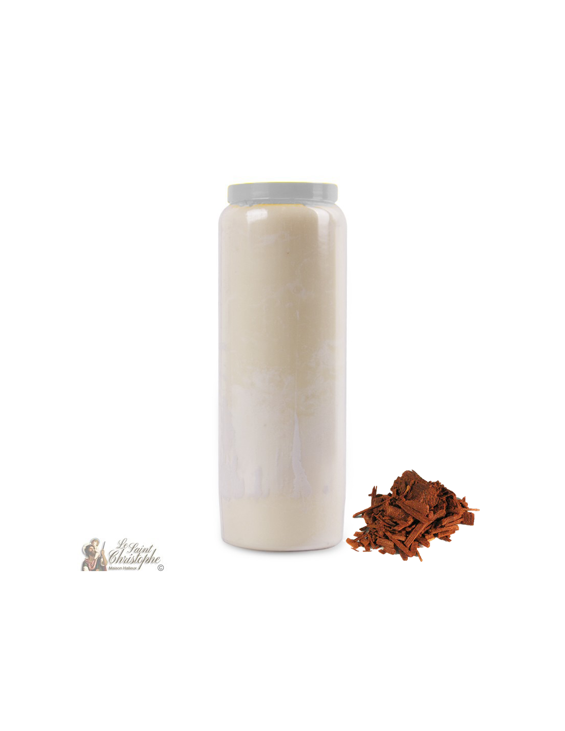 Bougie de neuvaine blanche, parfumée au bois de santal.