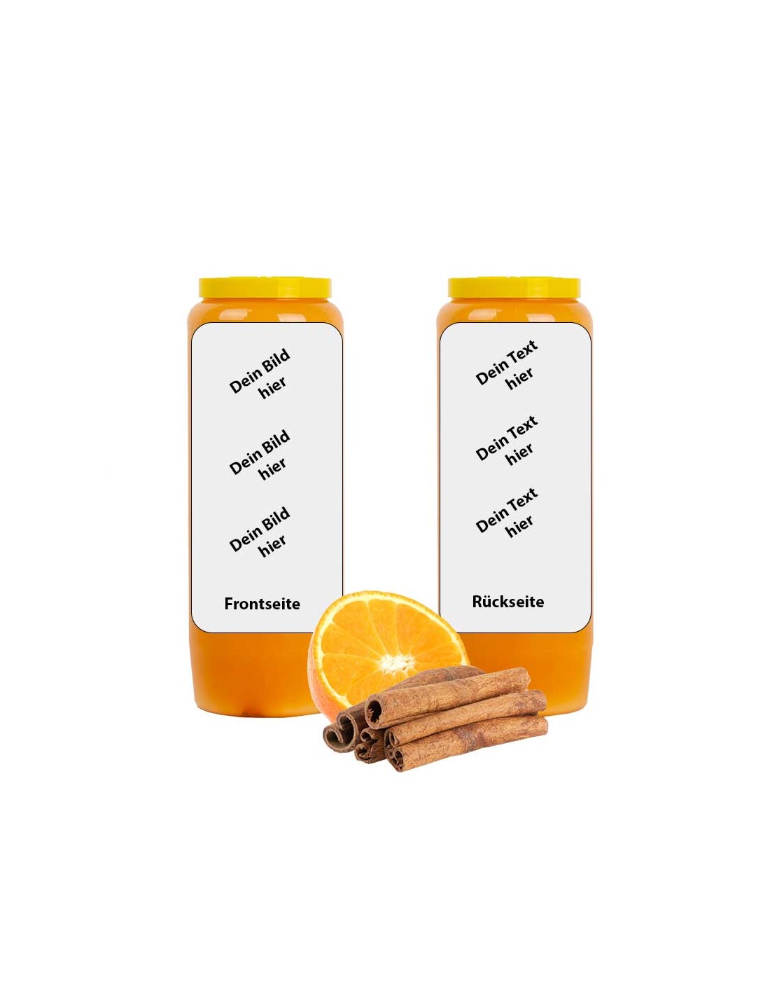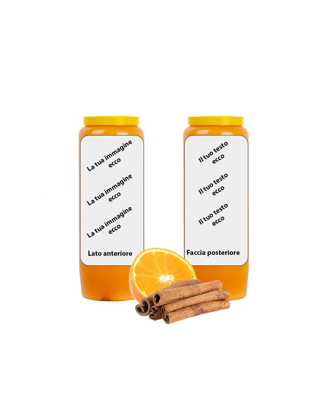 Bougie de neuvaine orange à l'huile végétale parfumée à la cannelle et à l'orange, personnalisable avec votre image et votre texte.