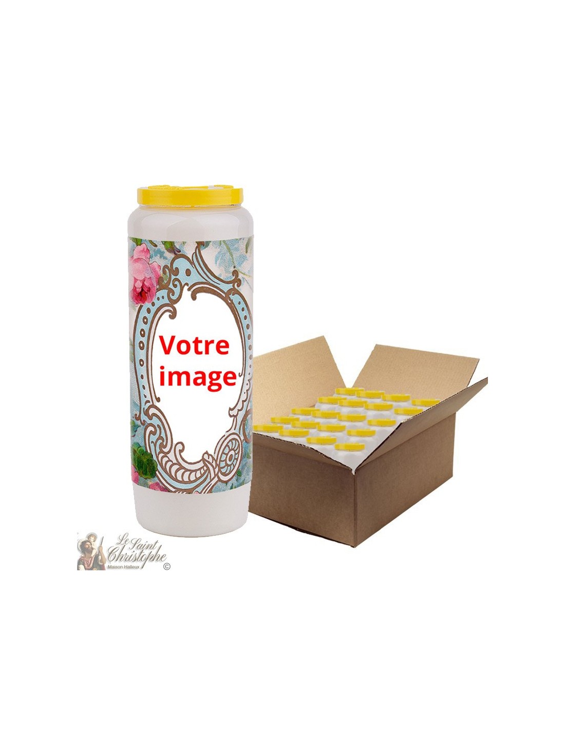 Un carton contient 20 bougies de neuvaines. Vous pouvez y mélanger différentes couleurs, images et parfums !