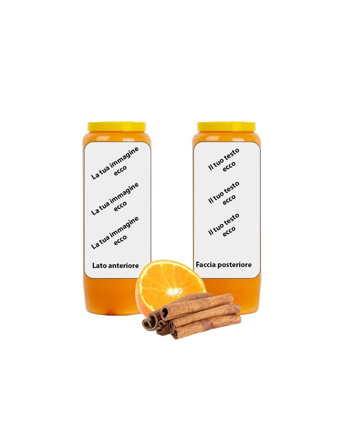 Bougie de neuvaine orange à l'huile végétale au parfum cannelle-orange, personnalisable avec votre image et votre texte.