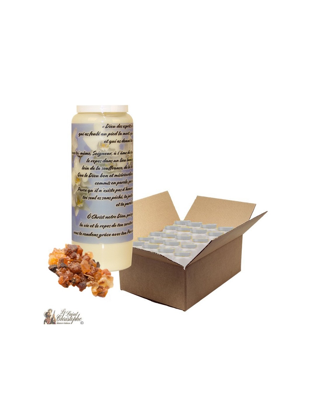 Bougie de neuvaine pour défunt parfum myrrhe - Fleurs - carton 20 pièces