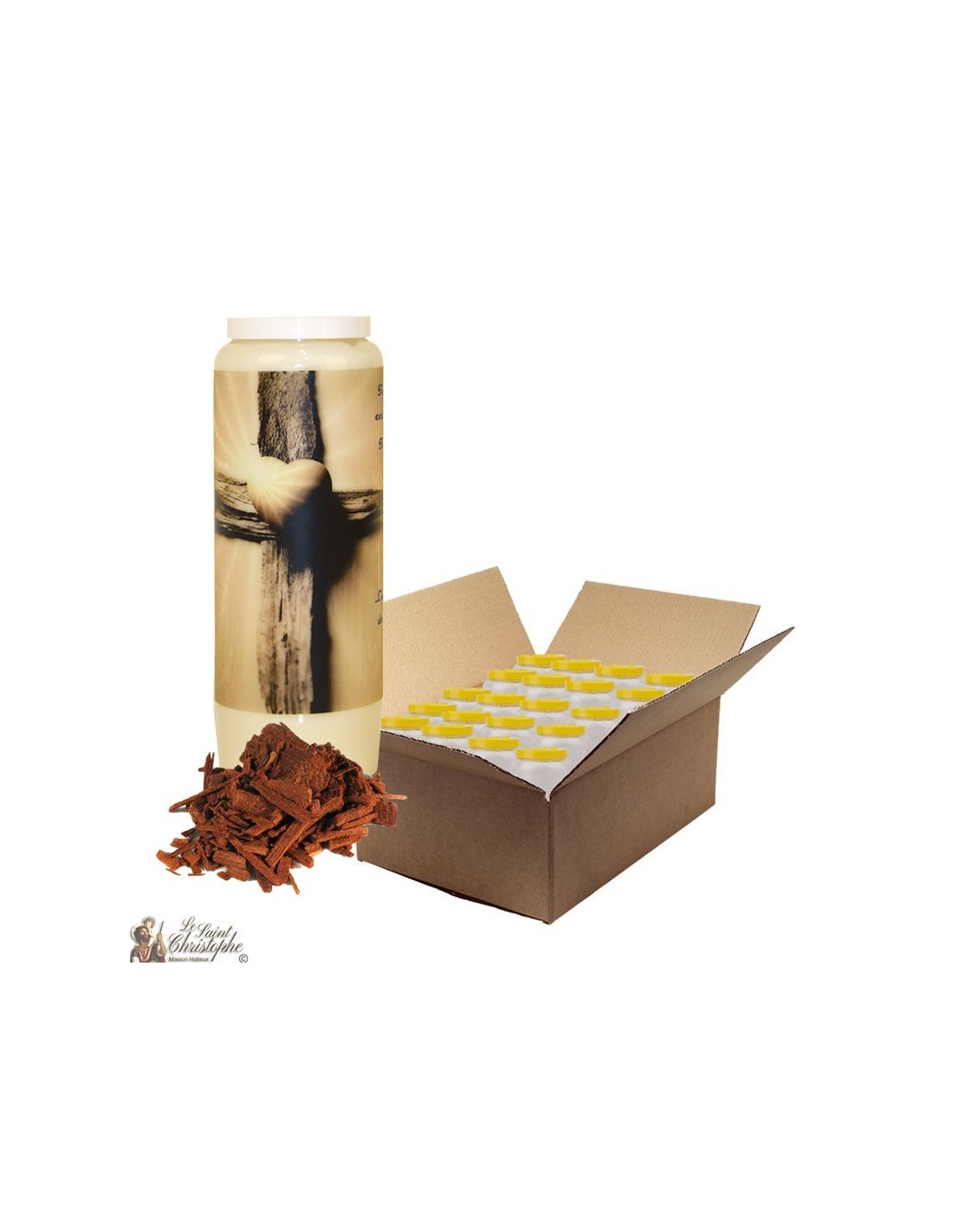 Bougie de neuvaine pour défunt parfum bois de santal - Croix - carton 20 pièces