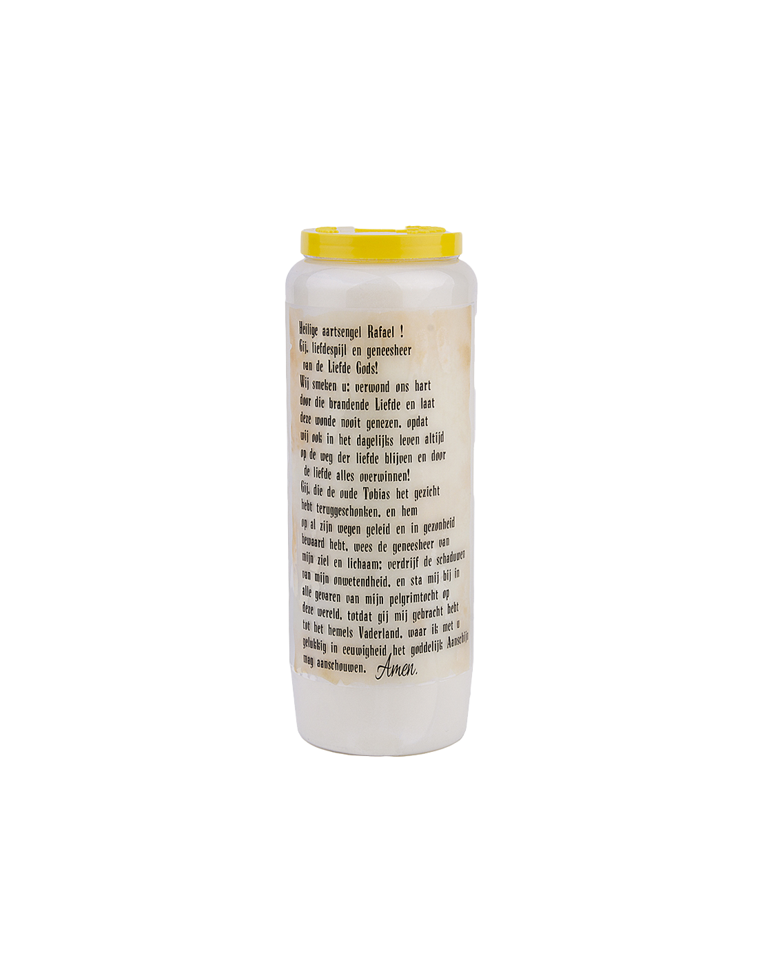 Texte au dos de la bougie - Sélectionnez la langue dans les options pour obtenir la prière dans votre langue