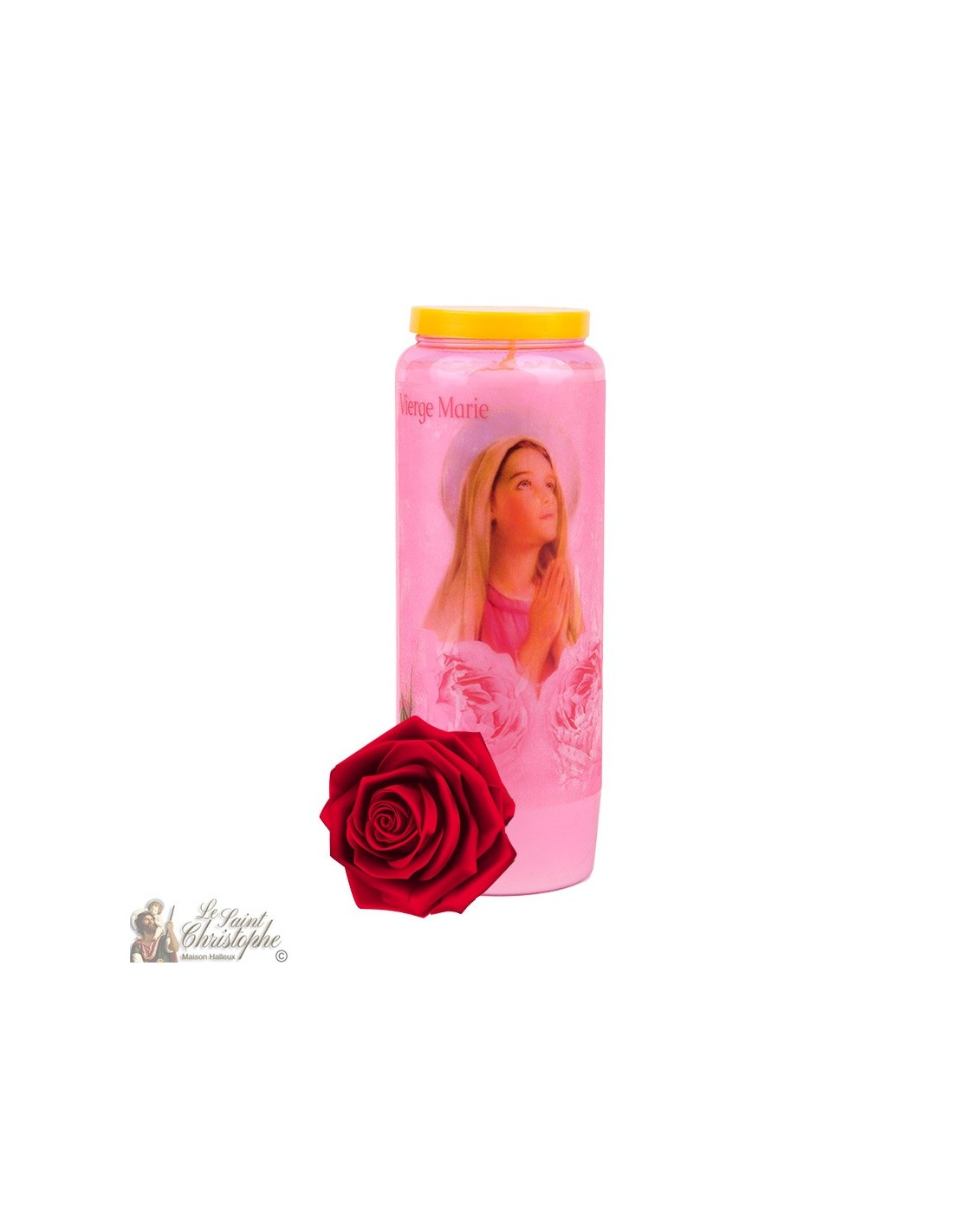 Bougies de Neuvaine Vierge Marie transparent parfumée à la rose