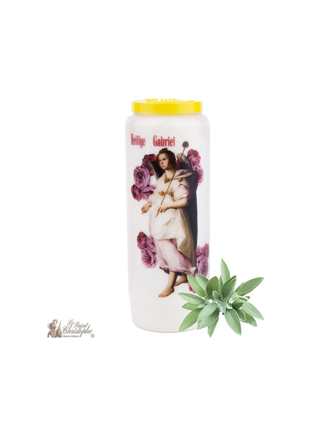 Bougie neuvaine végétale avec image et prière à Saint Gabriel, parfumée à la sauge. Une combinaison parfaite pour une purification des lieux et de soi.