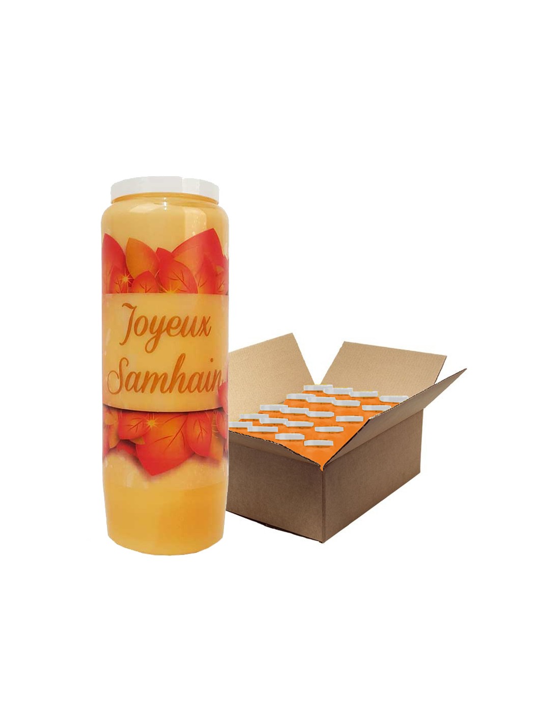 Bougies de neuvaine orange Halloween - Samhain - carton 20 pièces