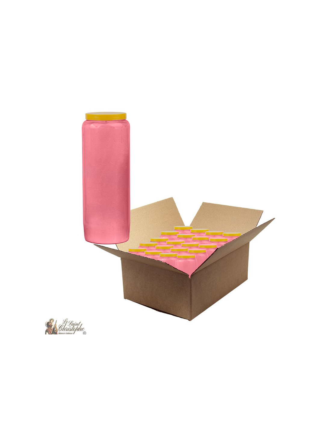 Bougie de neuvaine rose. Un carton contient 20 bougies.