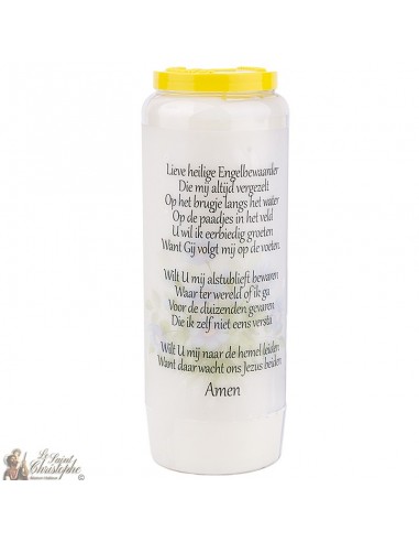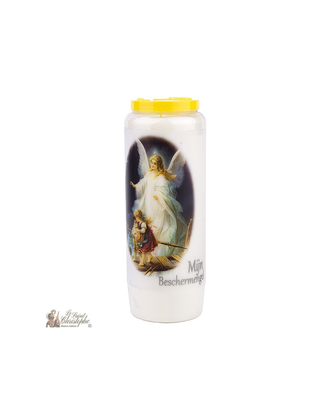 Candela novena con l'immagine dell'Angelo Custode con sul retro preghiera a lui dedicata.