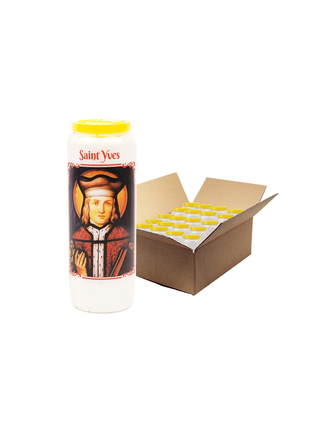 Candele da novena in olio vegetale con l'immagine di Sant'Yves e una preghiera a lui dedicata.