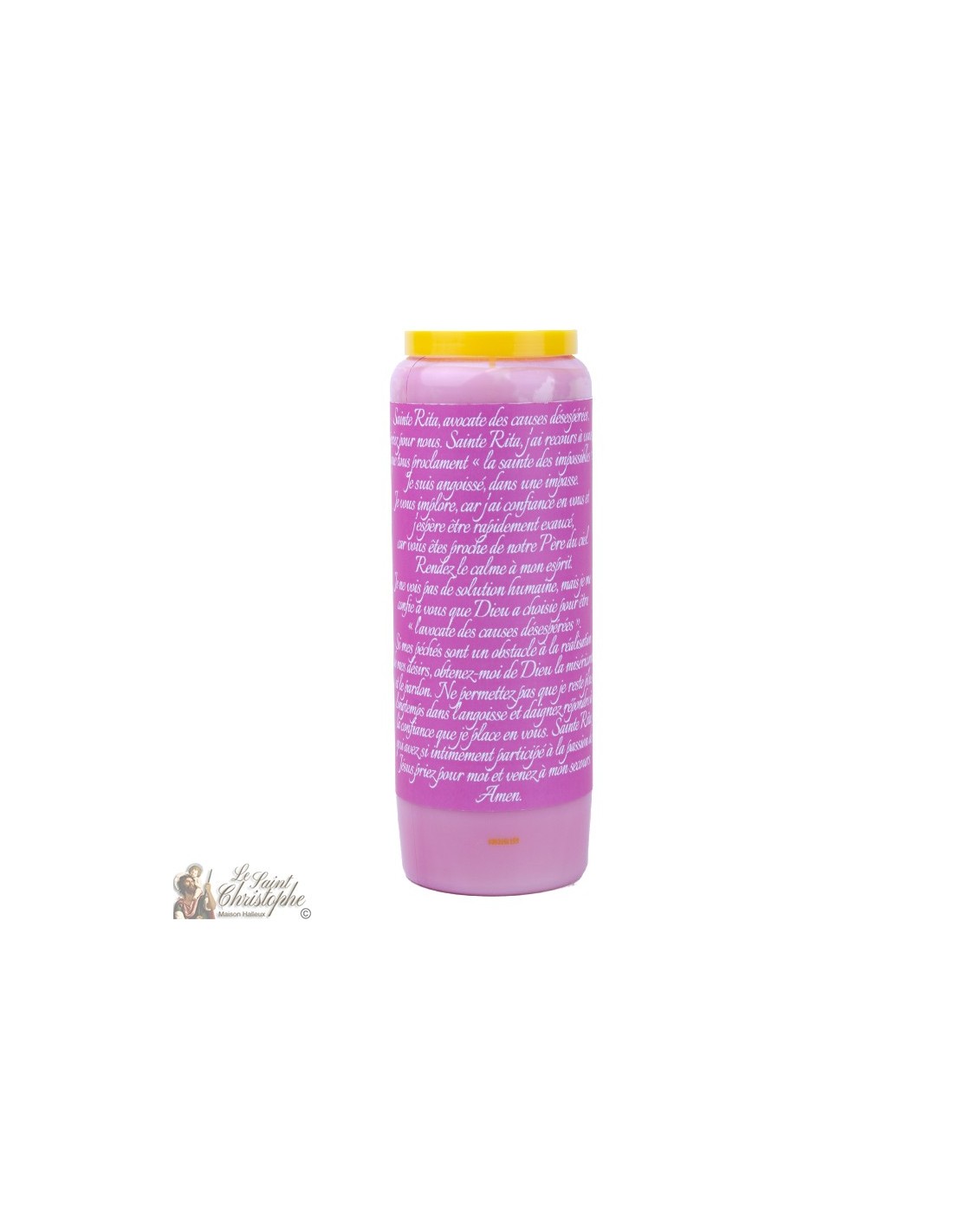 Candela di novena vegetale con un'immagine di Santa Rita e una preghiera sul retro nella lingua di vostra scelta. Questa candela è profumata di rosa.