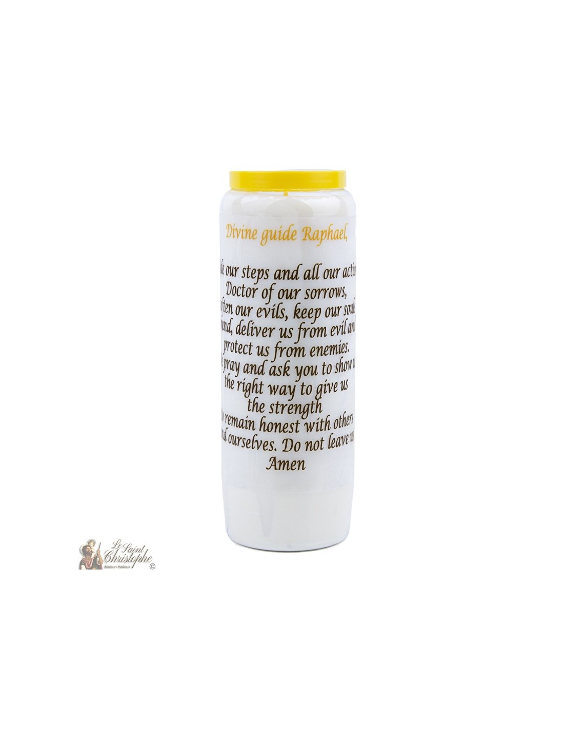 La guida divina guida Raffaello, guida i nostri passi e tutte le nostre azioni. Medico dei nostri dolori, ammorbidire i nostri mali. Mantenere sante le nostre anime, liberarci dal male e proteggerci dai nostri nemici. Vi preghiamo, vi chiediamo di indicarci la strada giusta per darci la forza di rimanere onesti con gli altri e con noi stessi. Non lasciarci. Amen.