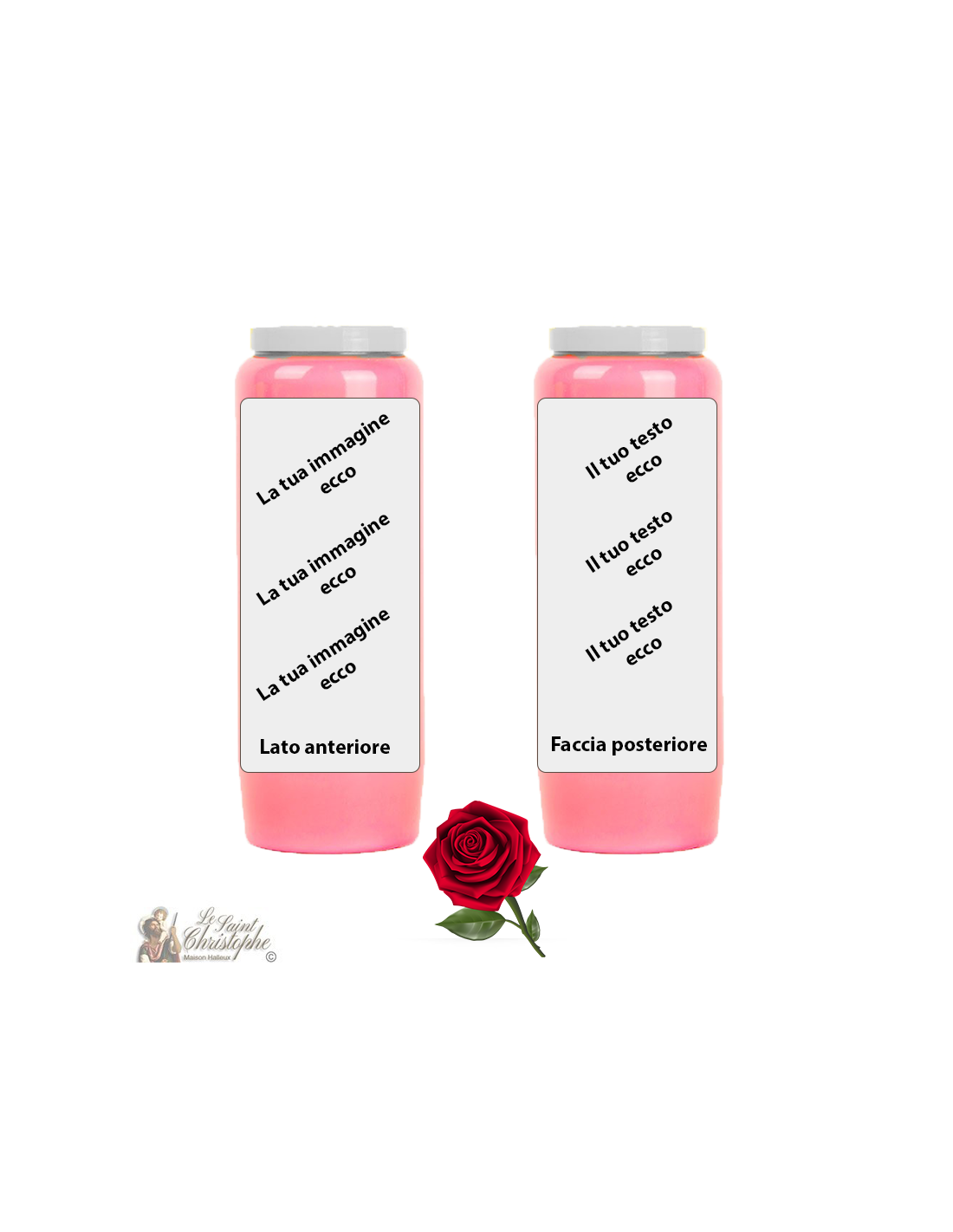 Novenakaars met naar roos geurende plantaardige olie, personaliseerbaar met uw afbeelding en tekst.