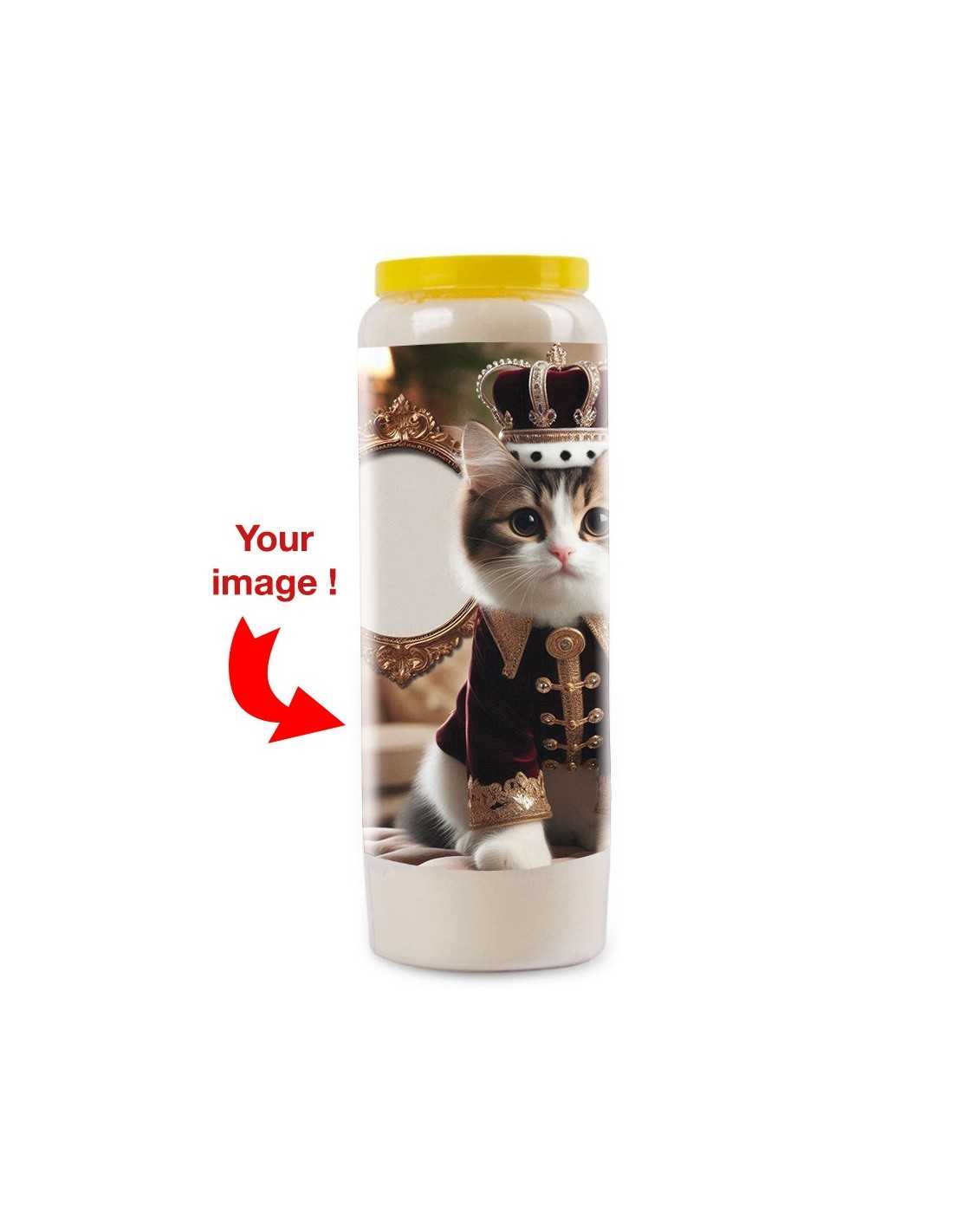 Voeg een vleugje elegantie en originaliteit toe met deze unieke novenekaars. Een geraffineerde en leuke knipoog voor alle kattenliefhebbers! Dit model stelt een kitten voor in koninklijke kleding, met een frame dat u naar eigen wens kunt personaliseren.