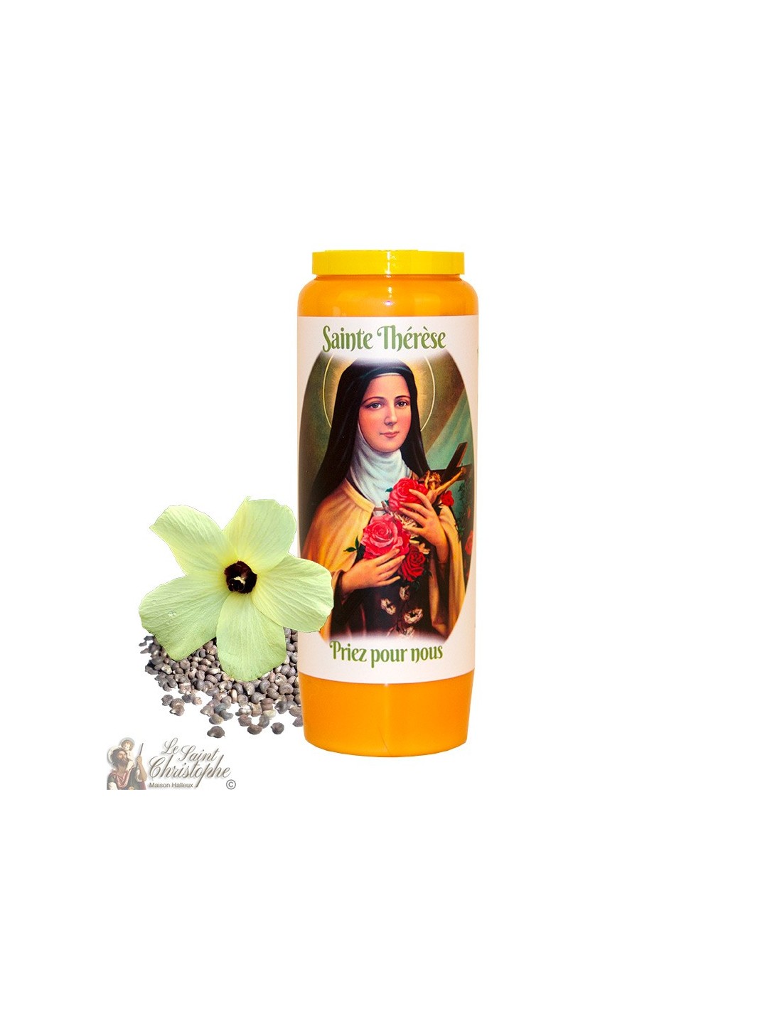 Echte 100% plantaardige novene geparfumeerd met muskus met een afbeelding van de heilige Thérèse van Lisieux en een gebed opgedragen aan haar, brandend 9 dagen (laat het dag en nacht branden).
