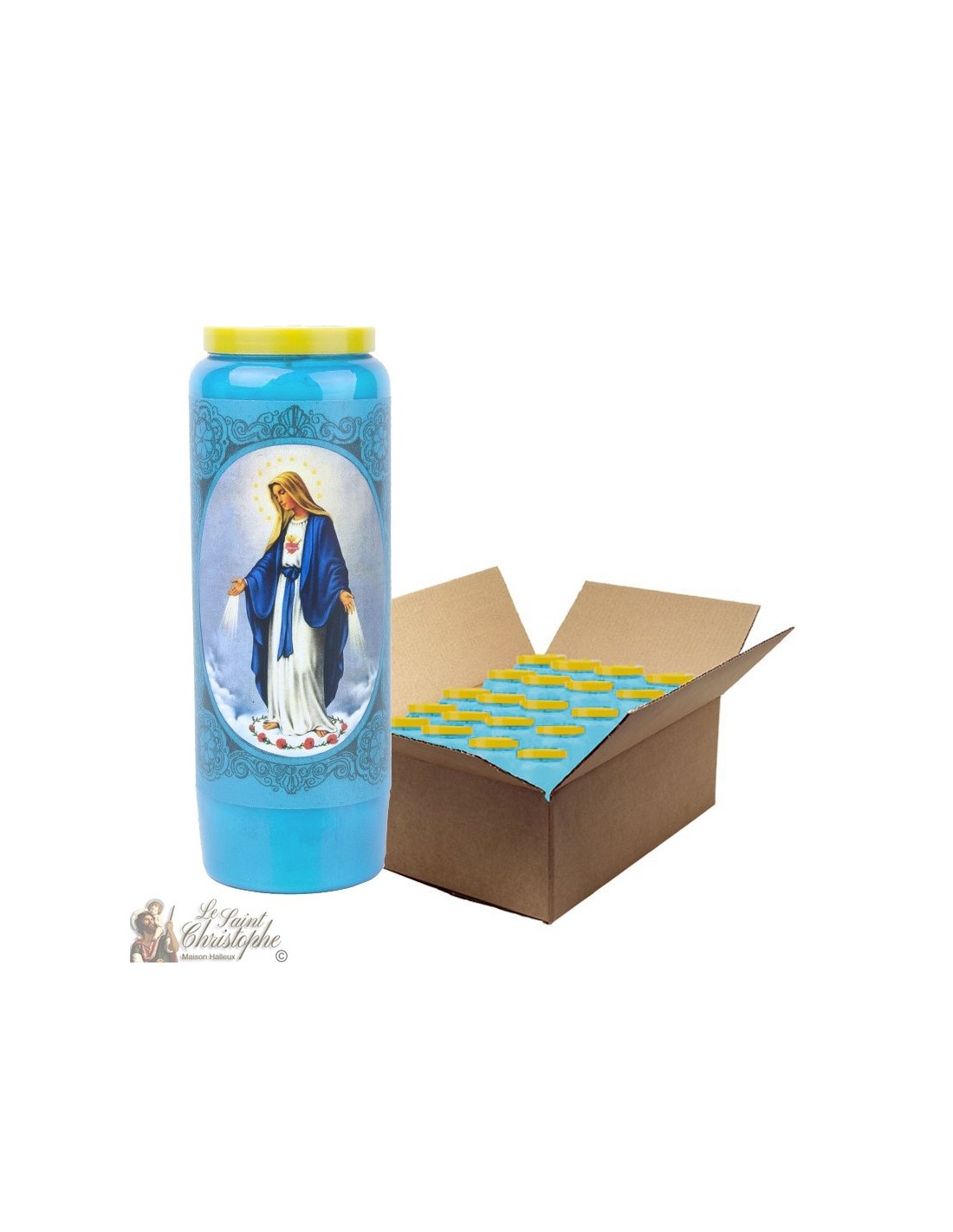 Novene kaars licht blauw aan de Wonderdadige Maagd - doos 20 stuks