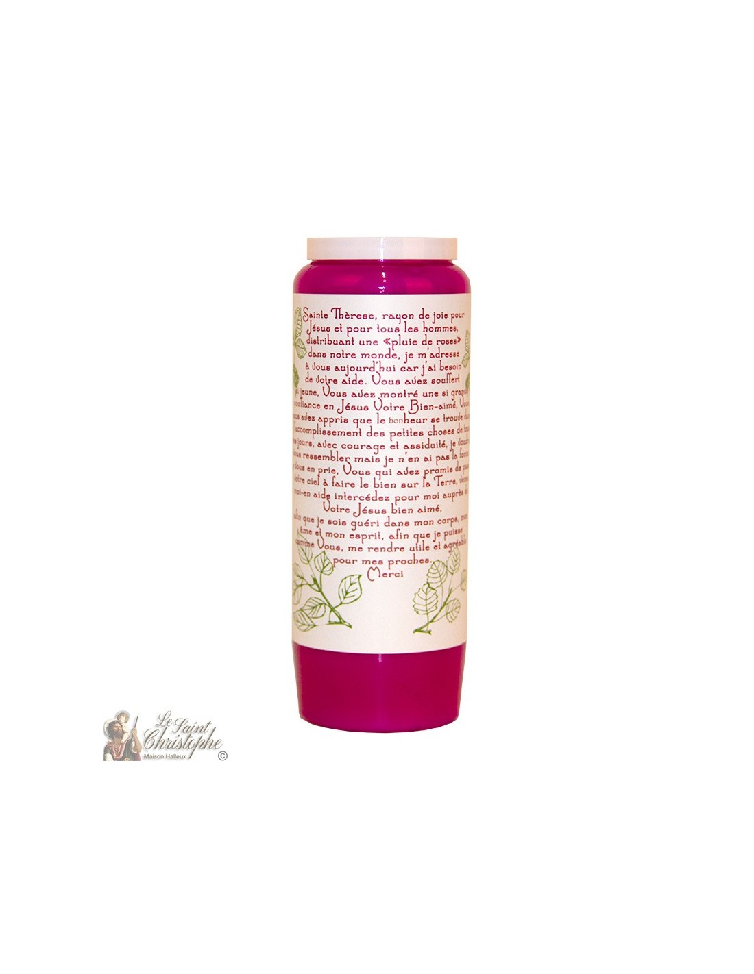 Plantaardige noveenkaars met een afbeelding van de heilige Theresia van Lisieux en gebed in de rug in de taal van uw keuze. - Een doos bevat 20 Novena-kaarsen.
